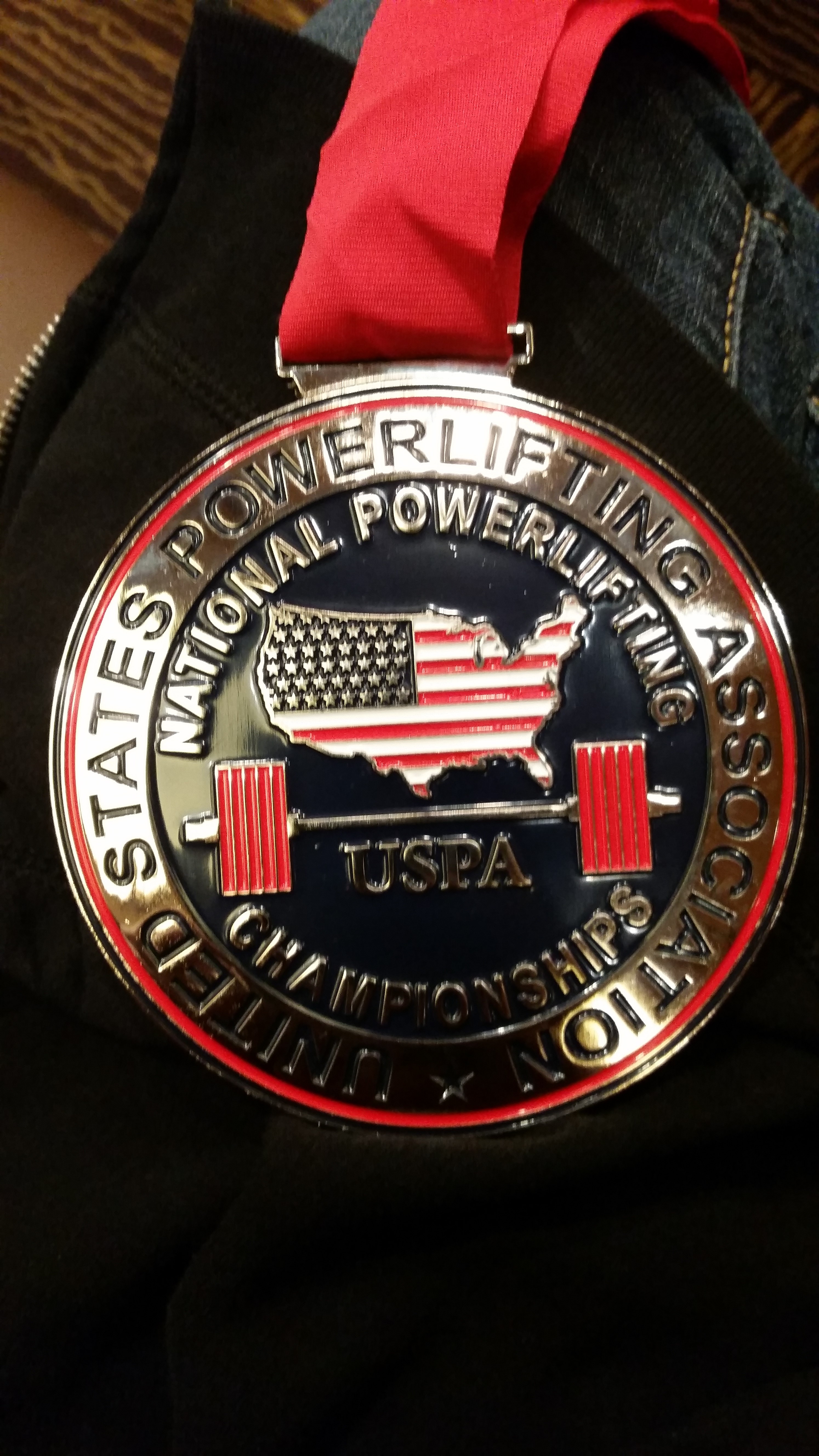 This event took place weekend of July 18th 2014 in Las Vegas. I was super stoked to have qualified to compete at this level. The whole experience was not perfect or close to it for me. My coach was not able to travel at the last minute so it was just my training partner and I. We did, however, hook up with an excellent coach and fellow powerlifter named Matthew Barba from Brownsville TX. I couldn’t have pulled through some of the lifts without his coaching. Overall, I was not happy with my performance. My goal was qualify for Worlds but I was about 30# short. I’ll try again in September at the Capitol of Tx Open in Austin. I did place 2nd and brought home a nice big silver medal, not bad for my 3rd meet 🙂 These were the only pics I took from the event. Unfortunately, I did not get any video or pics of my lifts 😦